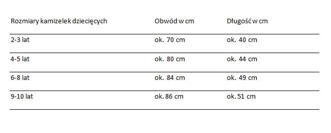 - Wykończenie kamizelki: lamówka.