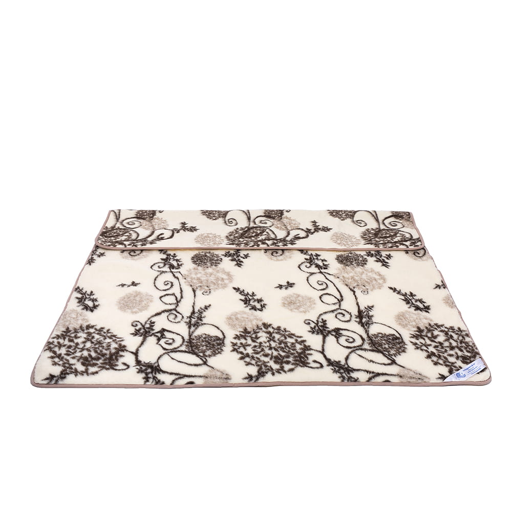 - Kolor/Wzór: ecru, jasnobrązowy, czarny / wzór roślinny na całym kocu