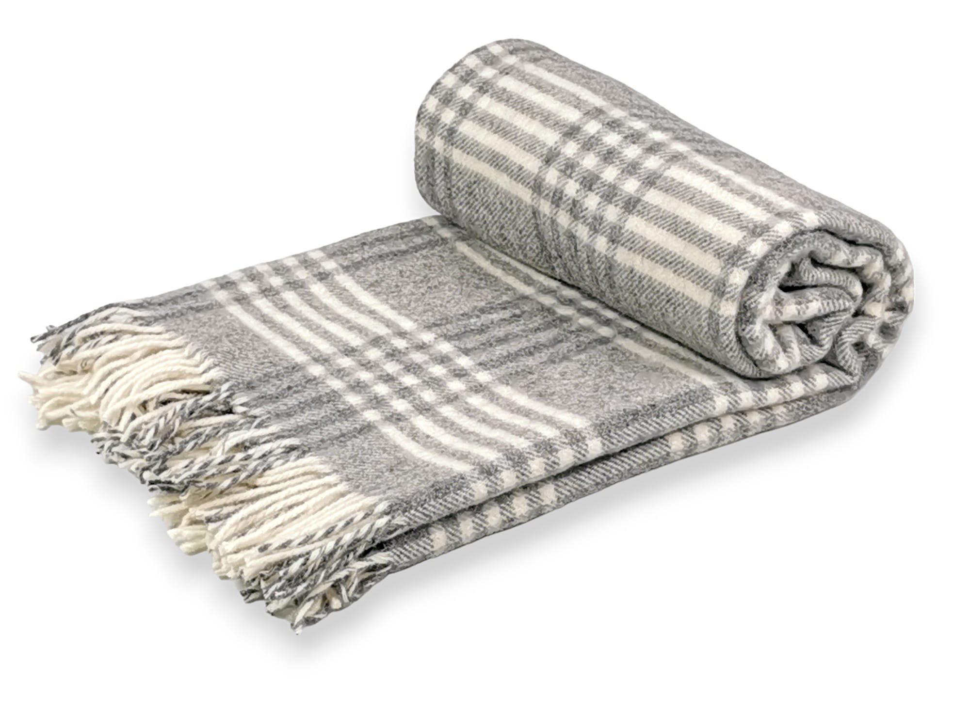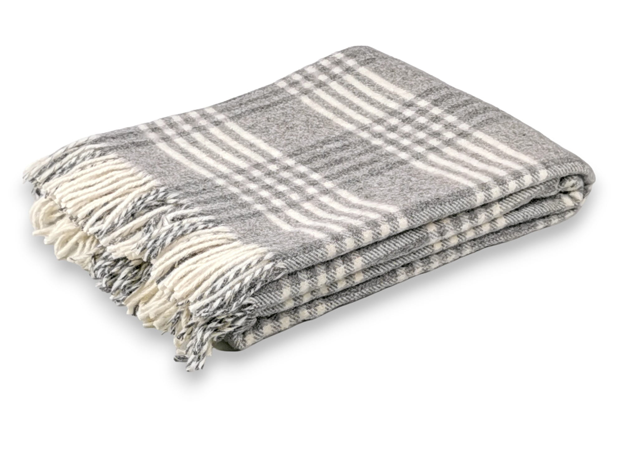 koc wełniany szary ecru drobna krata 155x200 (+-5cm)