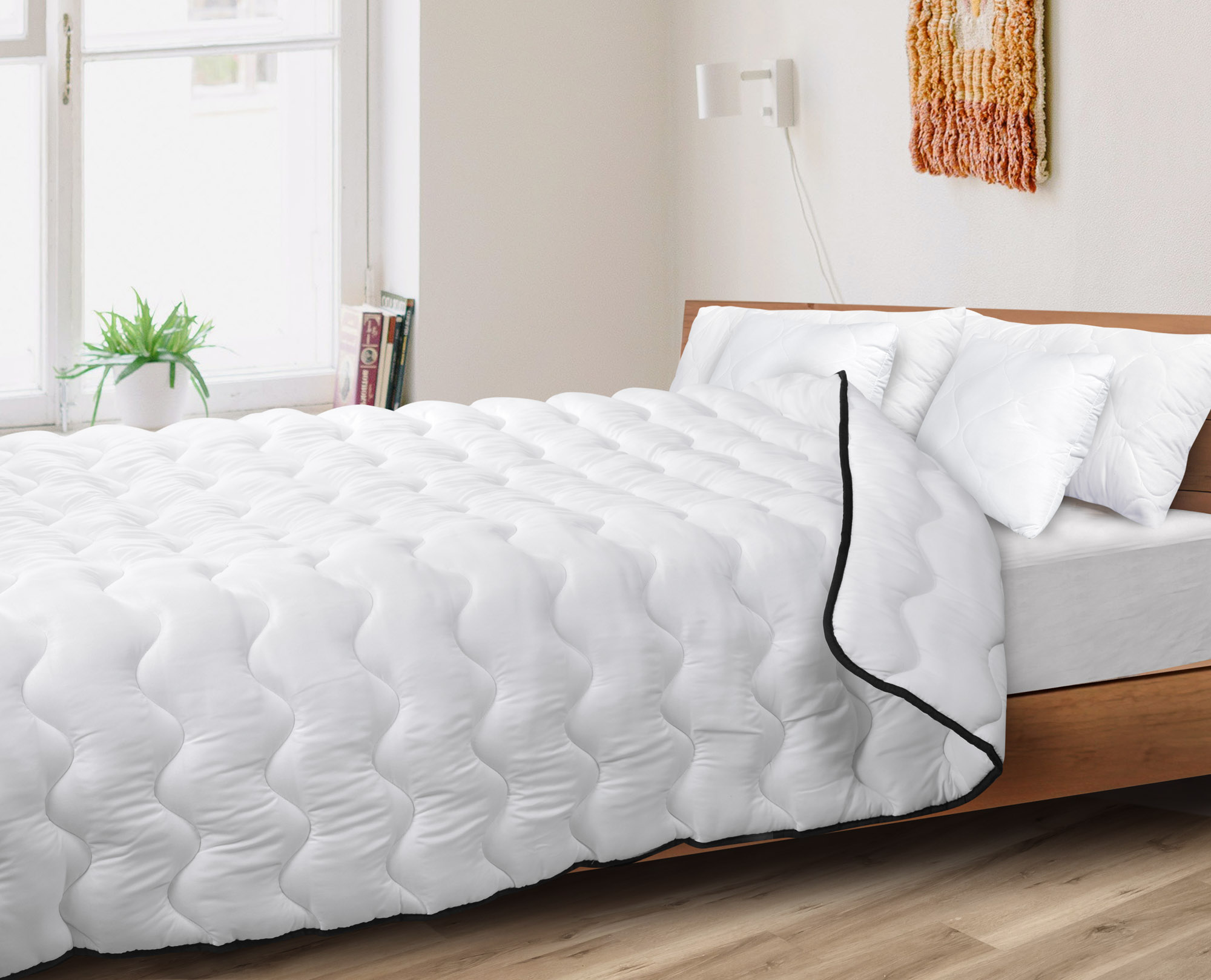 - Doskonała cyrkulacja powietrza wewnątrz kołdry pozwala ciału oddychać i optymalizować temperaturę podczas snu.
