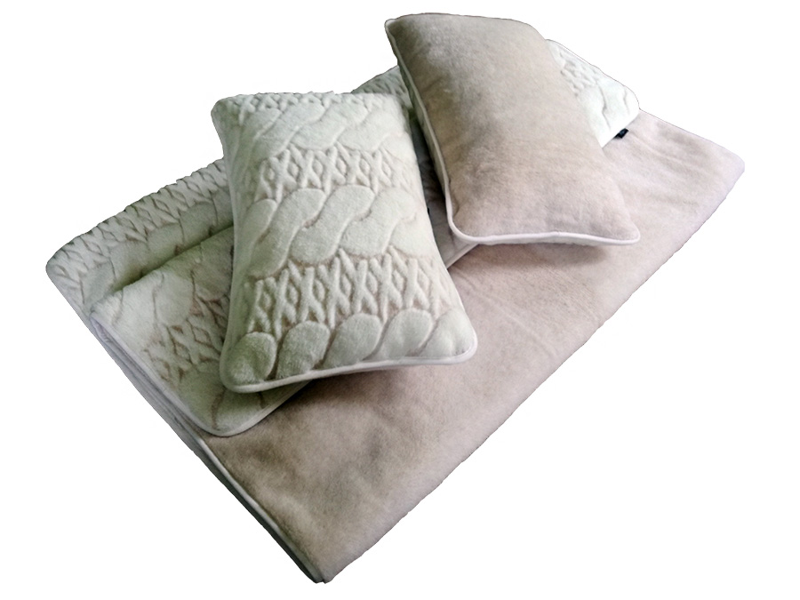 - Kołdra wykonana jest z dwóch warstw dzianiny wełny camel jasny + kaszmir calabria.
