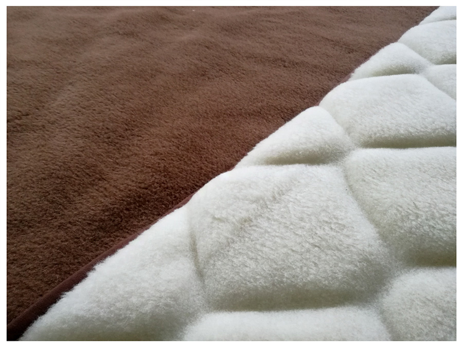 • *Podkład (jeśli występuje w komplecie) jest wykonany z wełny camel ciemny, podszyty od spodu materiałem oraz ma wszyte gumki mocujące na rogach.