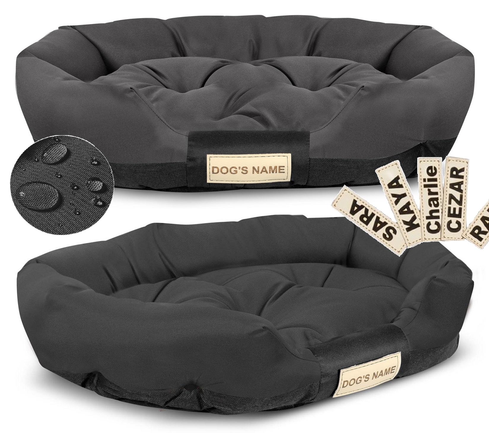 Wytrzymałe OWALNE wodoodporne legowisko dla psa w kolorze czarnym, PERSONALIZOWANE imieniem pupila!