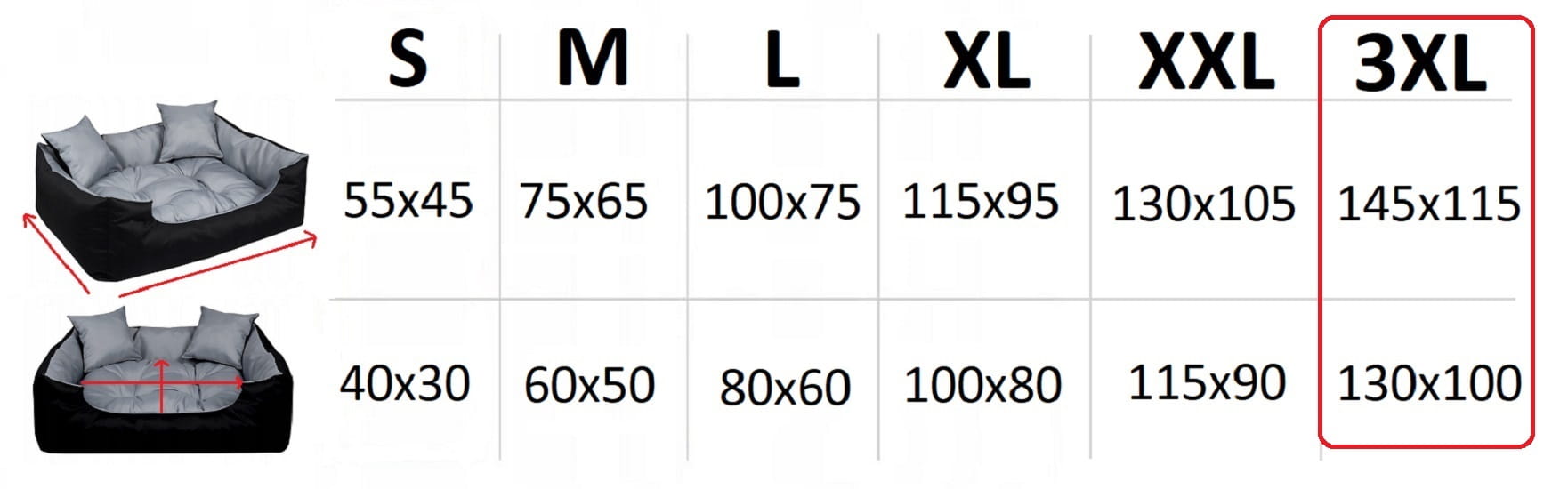 - Wymiar legowiska: 145 x 115