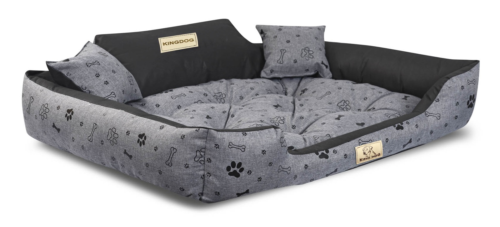Legowisko dla psa kojec KINGDOG 115x95 cm personalizowane wodoodporne kości czarne