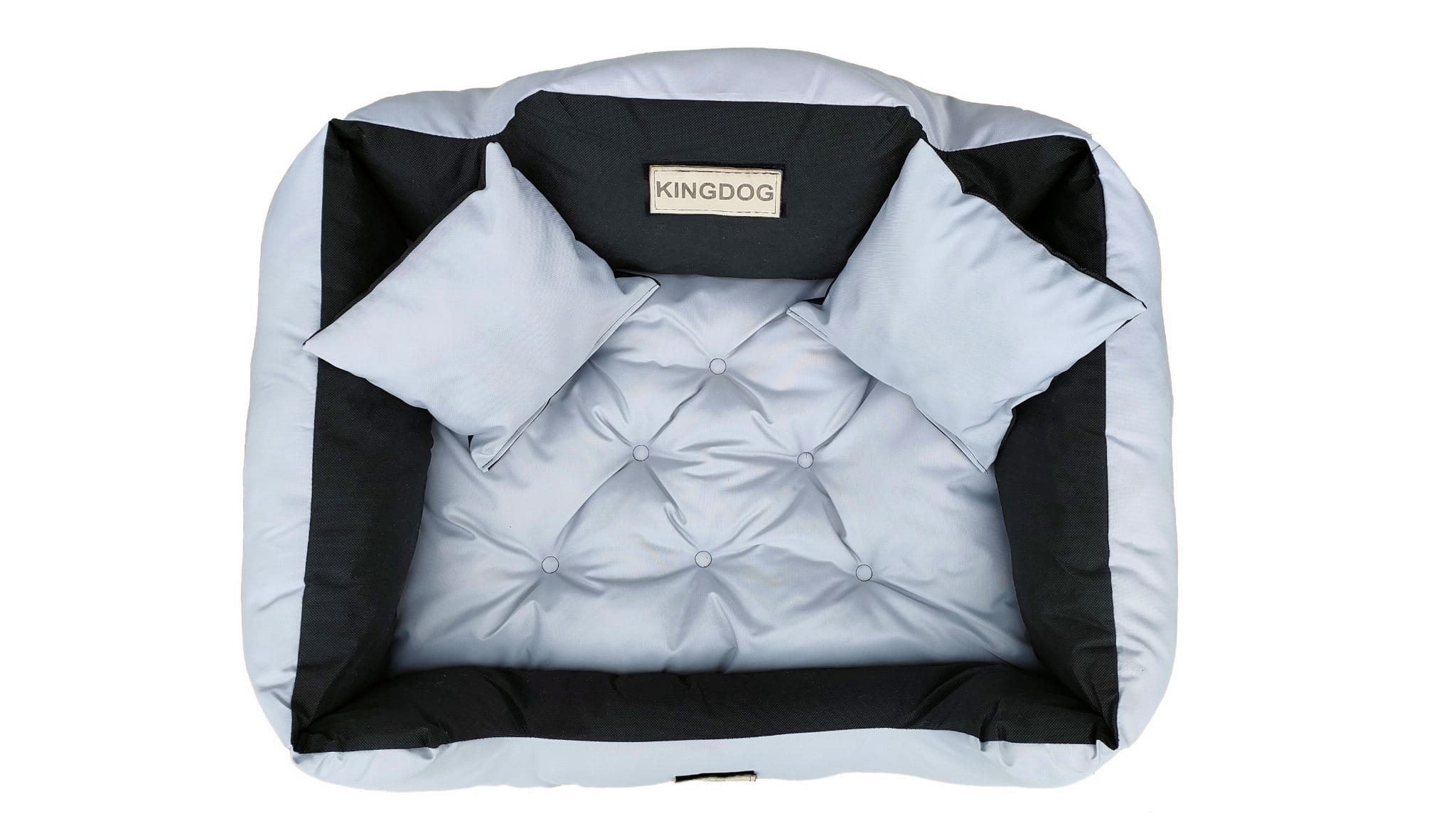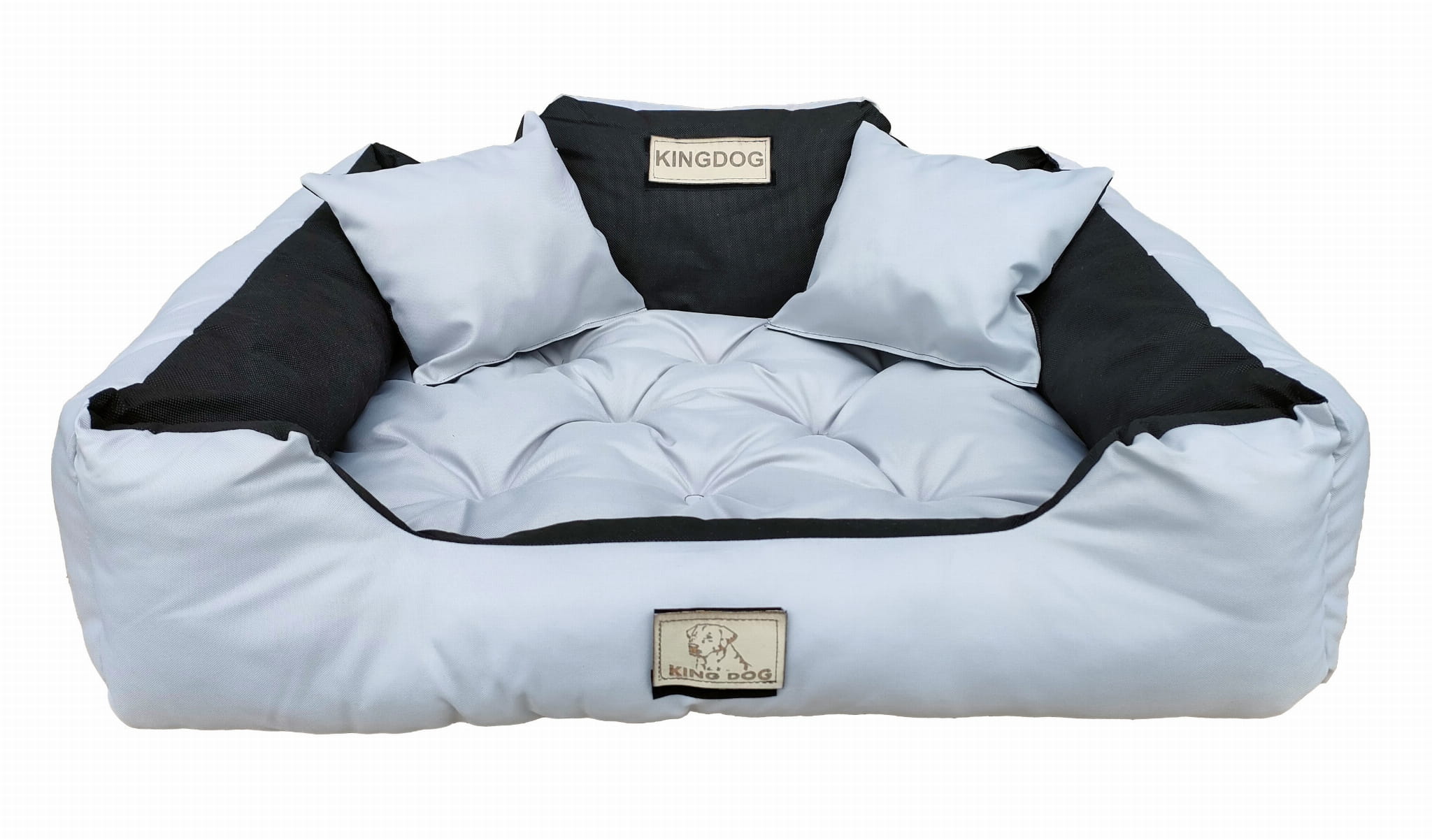 Wytrzymałe WODOODPORNE legowisko dla psa KINGDOG w kolorze jasnoszarym, PERSONALIZOWANE imieniem pupila!