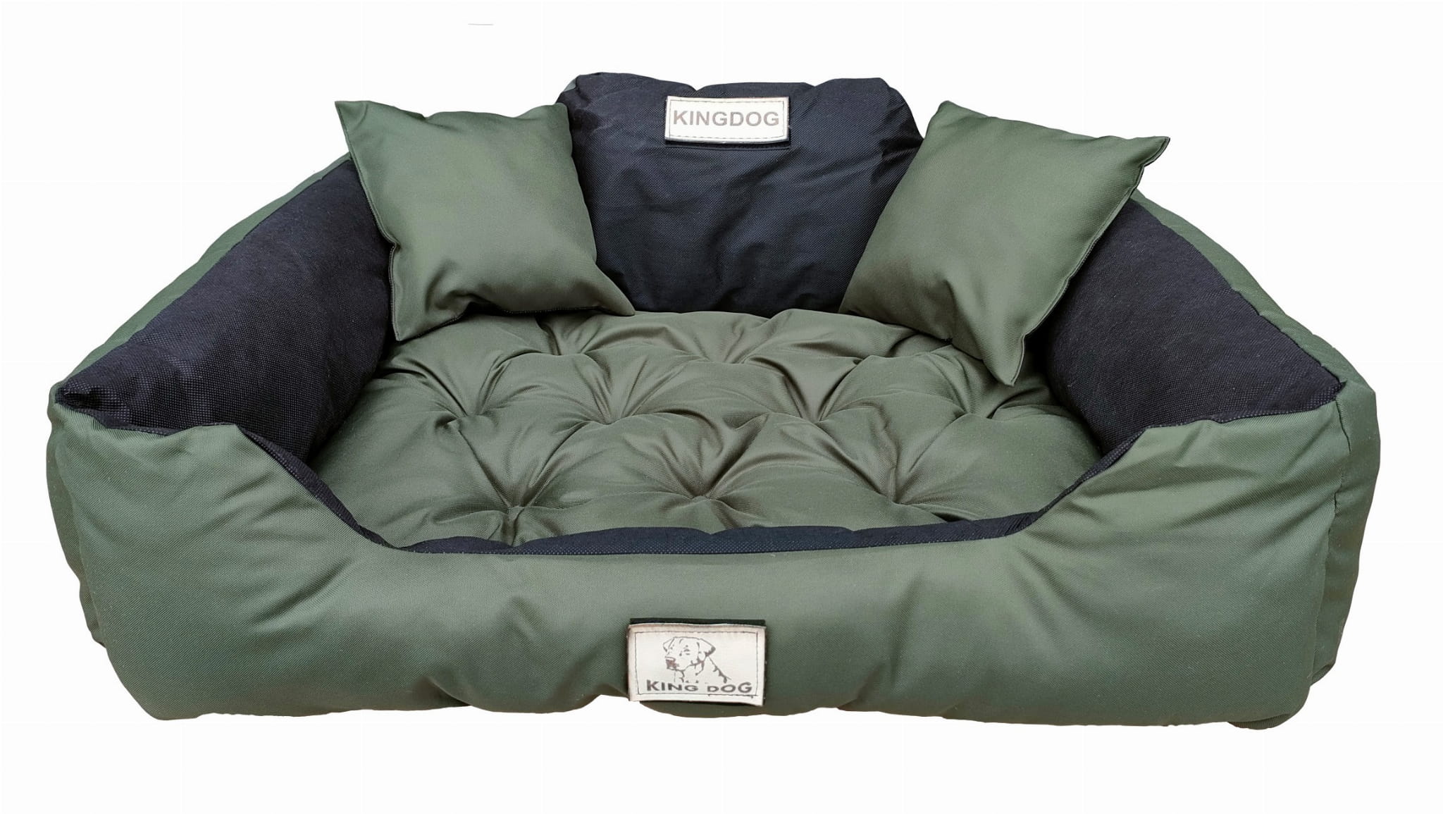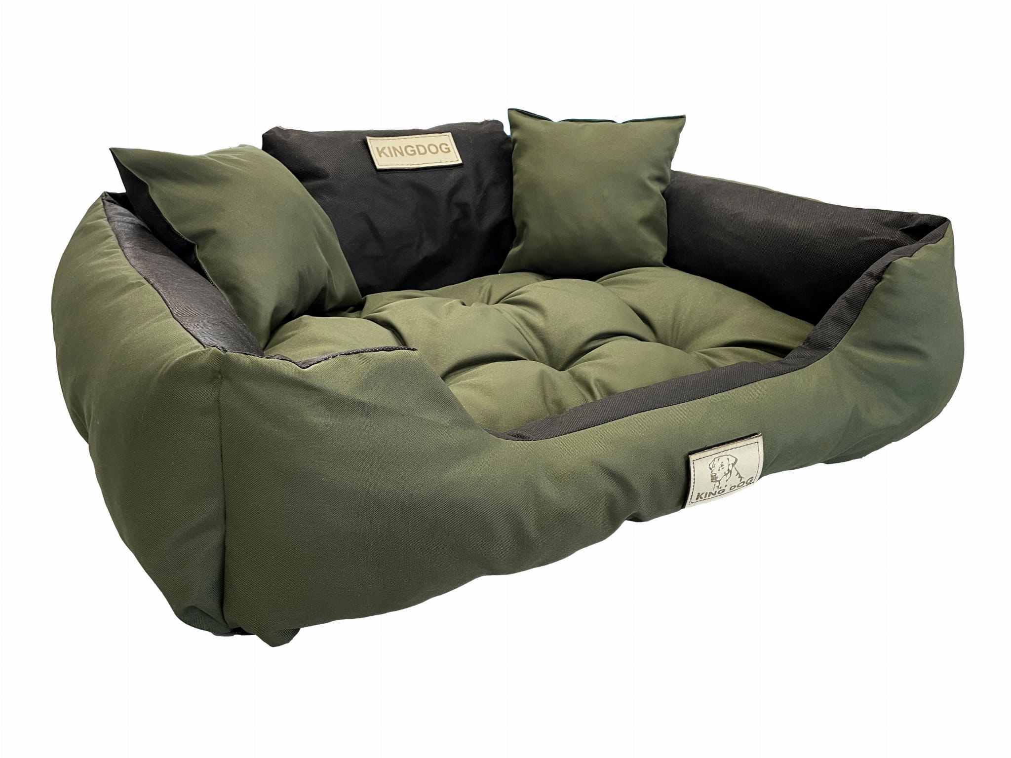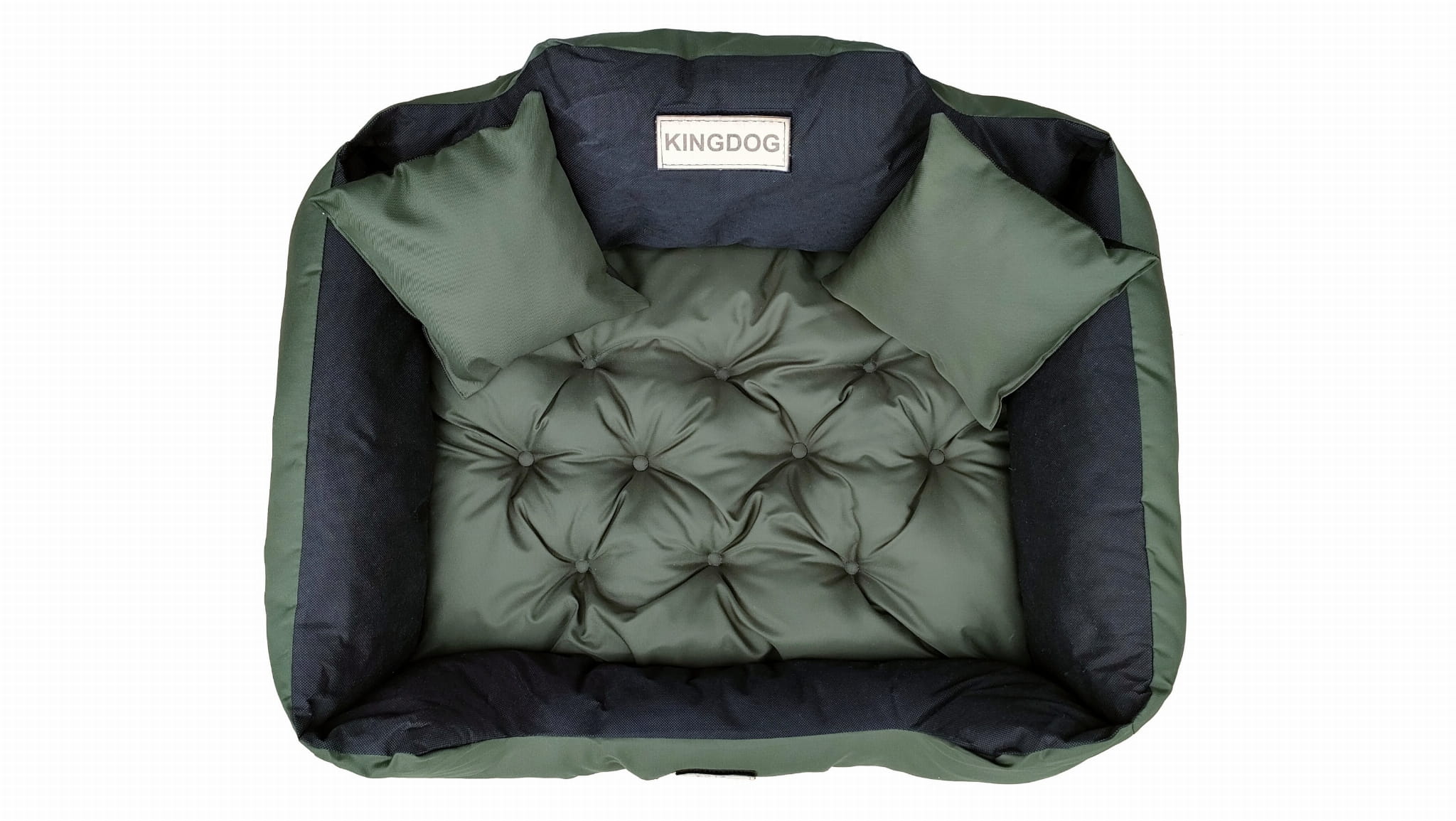 Wytrzymałe WODOODPORNE legowisko dla psa KINGDOG w kolorze ciemnozielonym, PERSONALIZOWANE imieniem pupila!