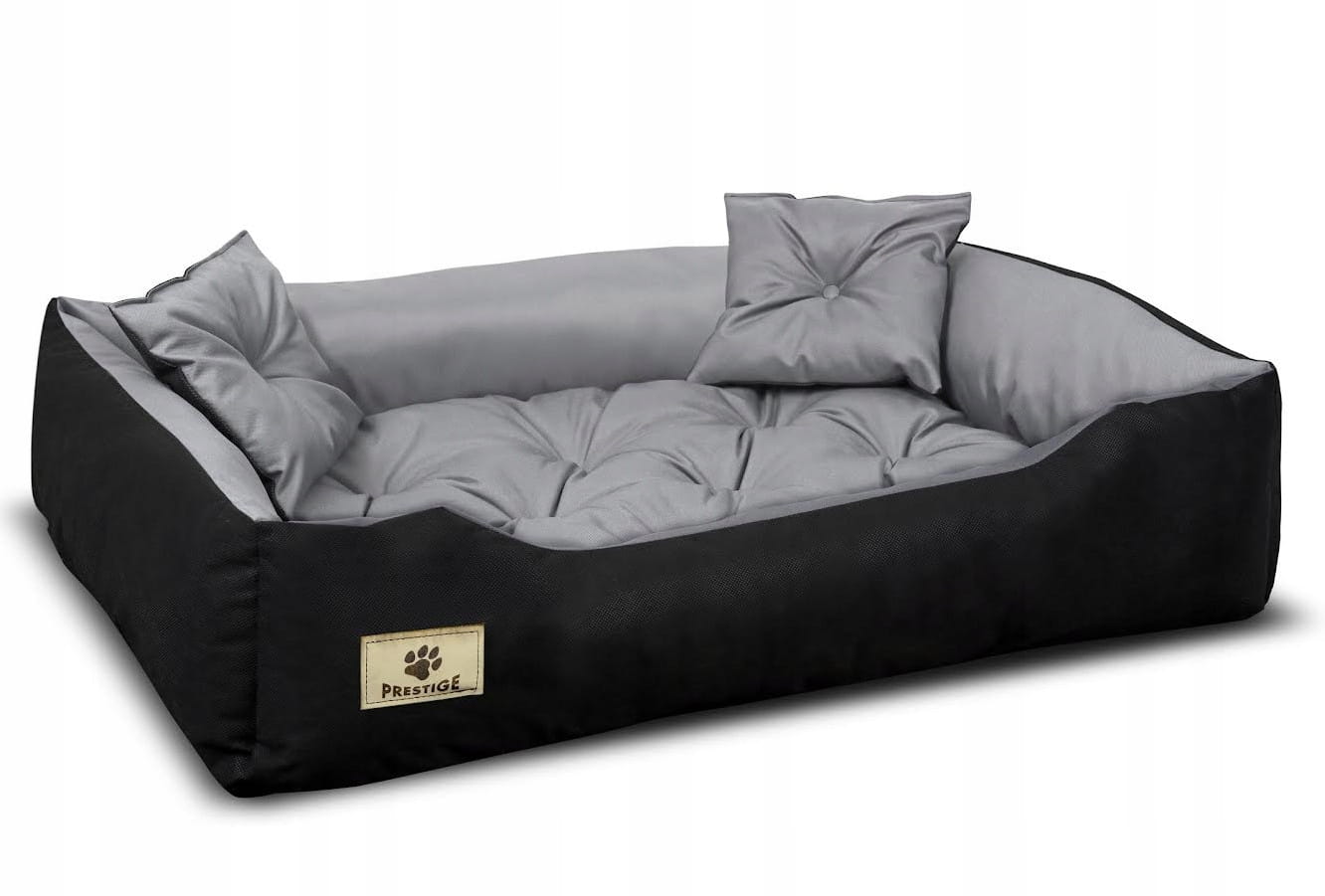 WODOODPORNE legowisko dla psa PRESTIGE w kolorze ciemnoszarym, z GRAWEROWANYM logo Prestige!