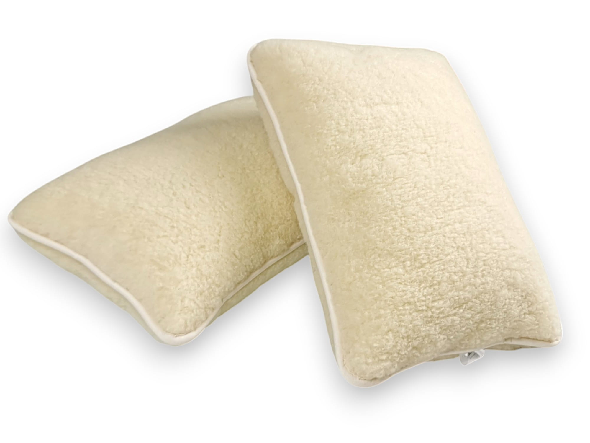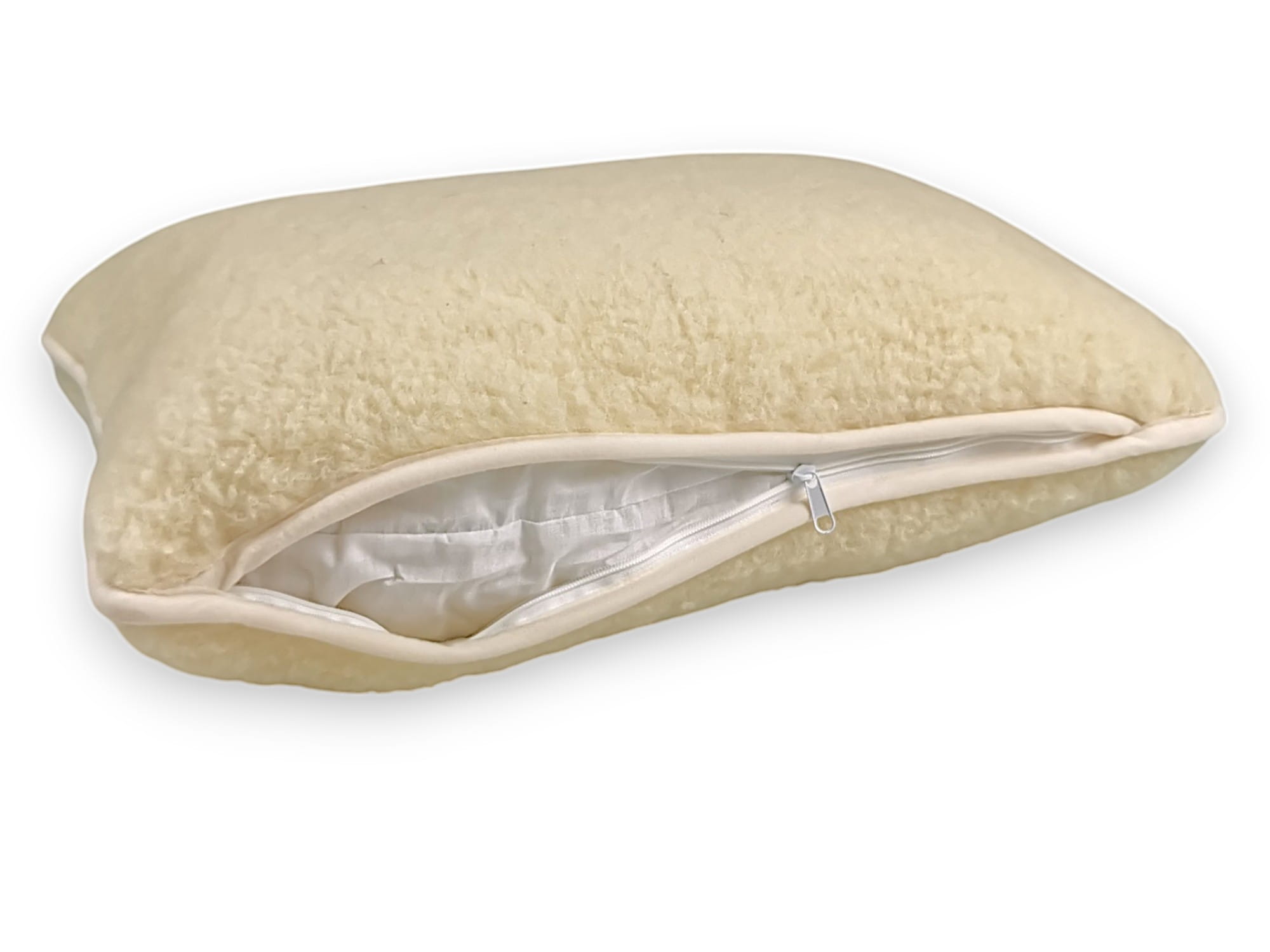 - Poduszki wykonane są z dwóch warstw dzianiny wełny merynos australijski ecru.