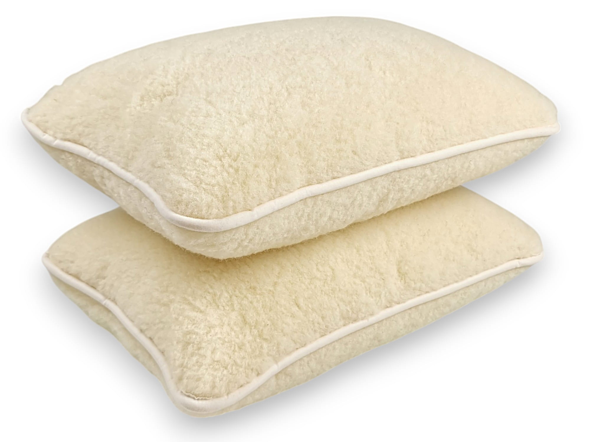 - Poduszki wykonane są z dwóch warstw dzianiny wełny merynos australijski ecru.
