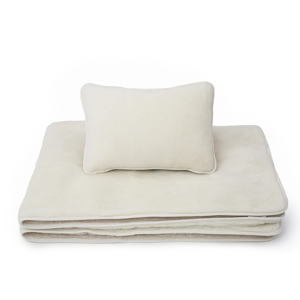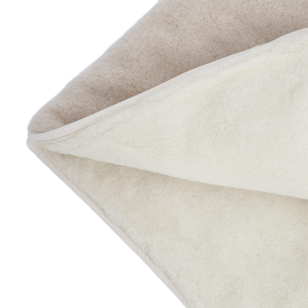 • Elementy pościeli takie jak kołdra i poduszki wykonane są z dwóch warstw dzianiny wełny camel jasny + kaszmir gładki.
