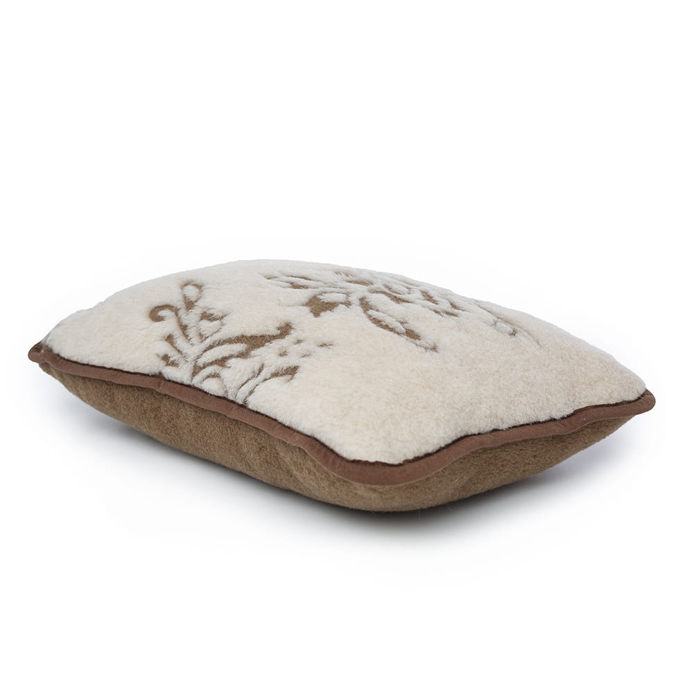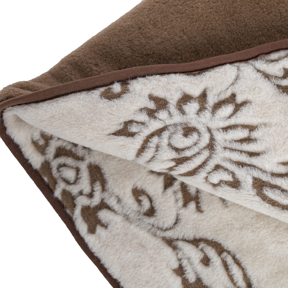 • Elementy pościeli takie jak kołdra i poduszki wykonane są z dwóch warstw dzianiny wełny jasny lombardia + camel ciemny.
