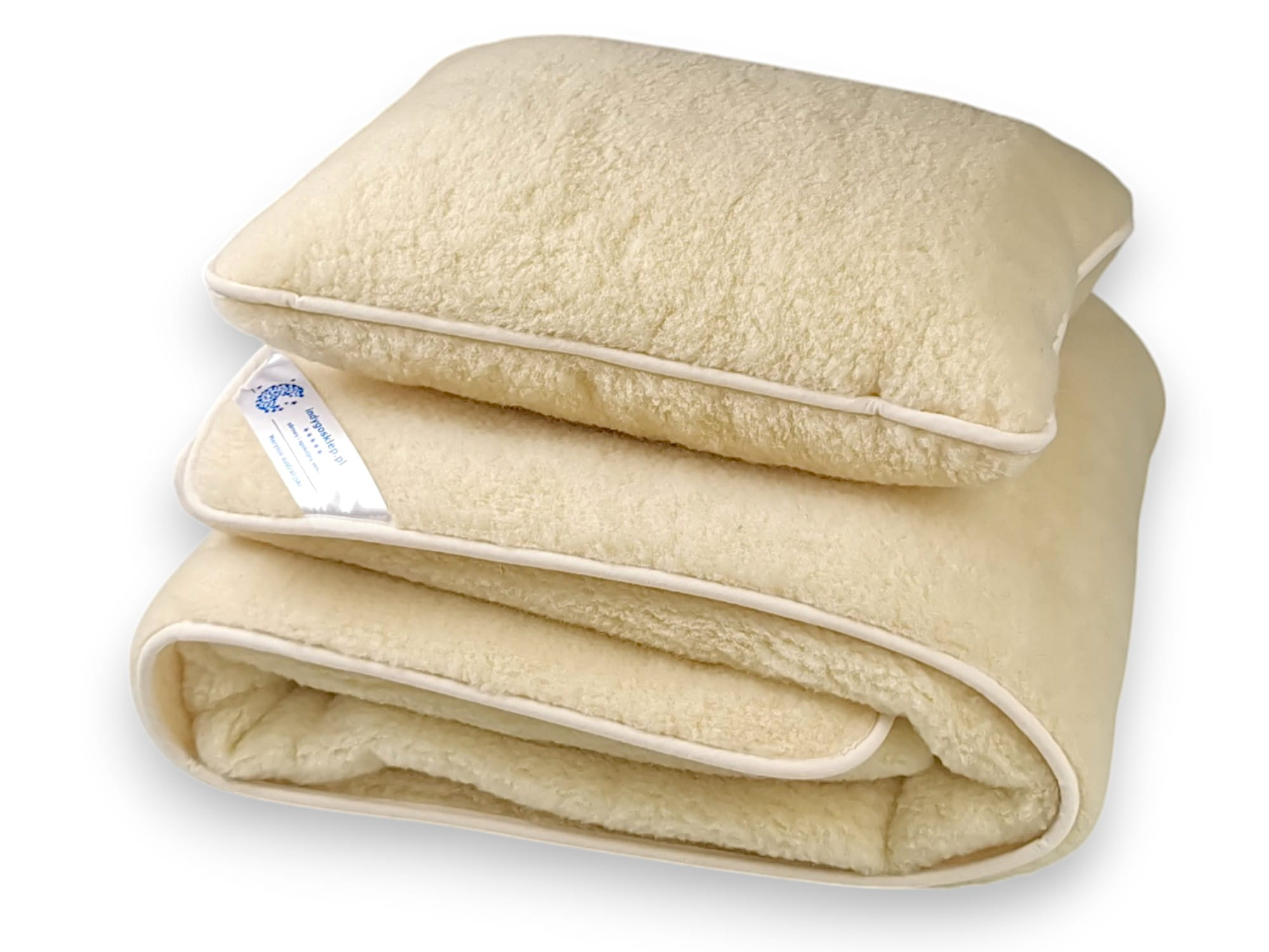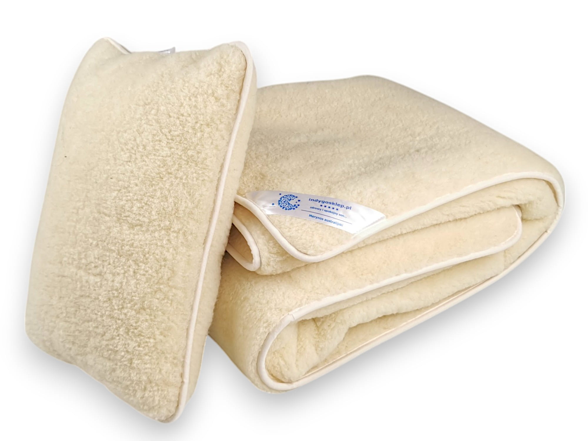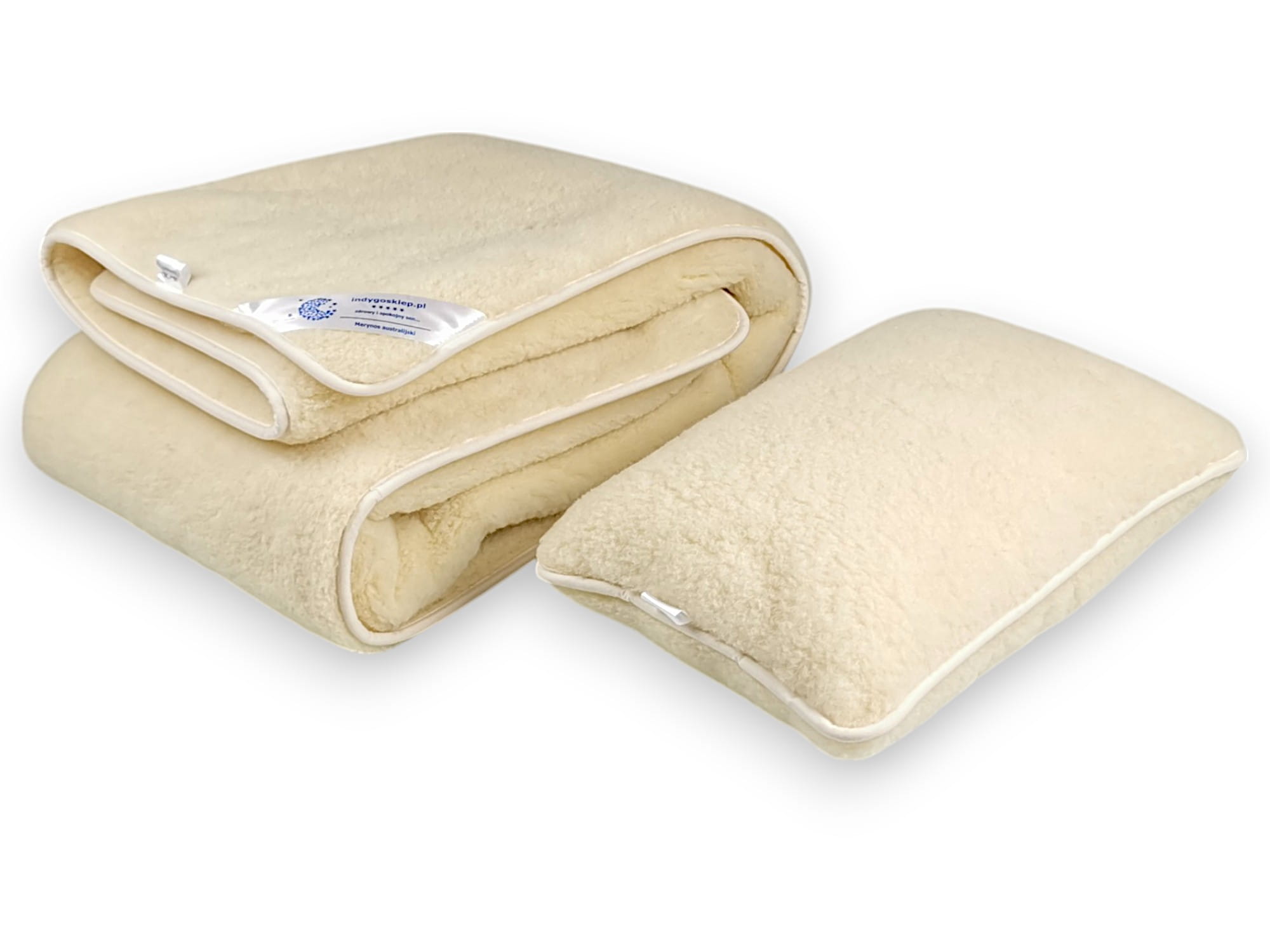Pościel wełniana merynos australijski ecru (kołdra 140x200, poduszka 40x60) (+-5cm)