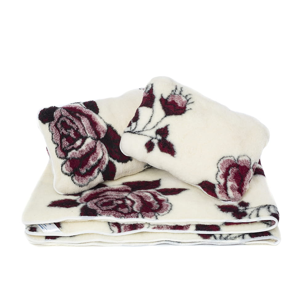Pościel wełniana merynos australijski wzór czerwona róża (kołdra 200x220, 2x poduszka 50x60) (+-5cm)