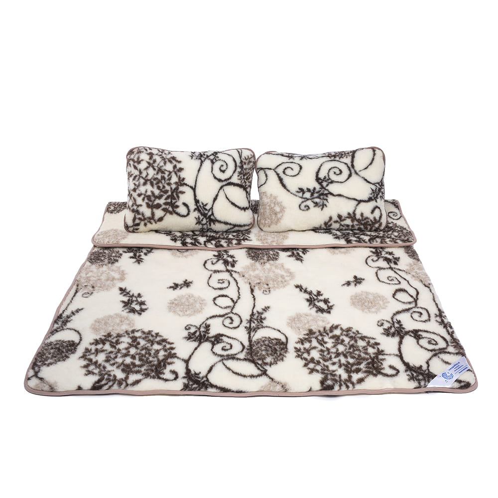 Pościel wełniana merynos australijski, wzór natura (kołdra 160x200, 2x poduszka 40x60) (+-5cm)